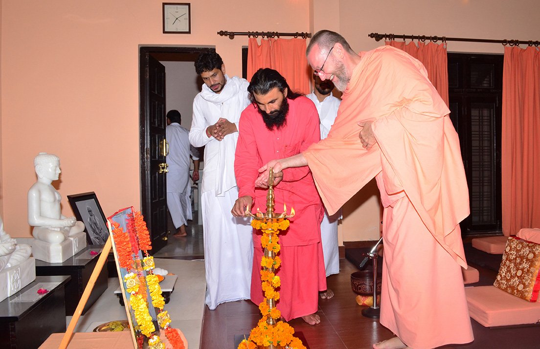 From 1st to 3rd of October 2015, Ajatananda Ashram was graced by the visit of H.H. Mahant Baba Brahmadas Ji Udasin, the 12th Mahant of Dera Baba Bhuman Shah Ji, Sangar Sarista (Sirsa, Haryana). Sri Mahant Brahmadas Ji is the Spiritual Head of a sangha of hundreds of thousands of disciples and devotees of the great mystic sage of the 18th century from Punjab, Brahmalin Srimat Baba Bhuman Shah Udasin (14th of April 1687 – 27th December 1747) who is also known as the Gurudeva of the contemporary sage H.H. Sri Chandra Swami Ji Udasin. He is also in-charge of the numerous temples that have been built in different states of northern India by the Hindu followers of Baba Bhuman Shah Ji after they migrated to India in 1947.