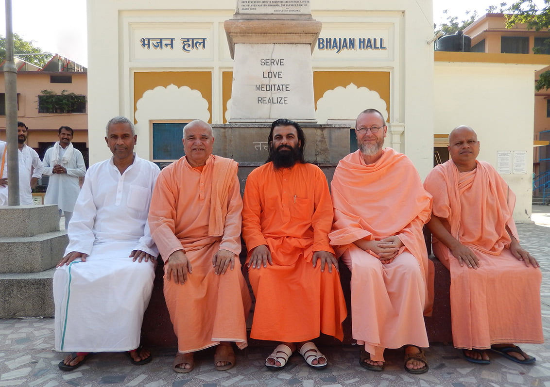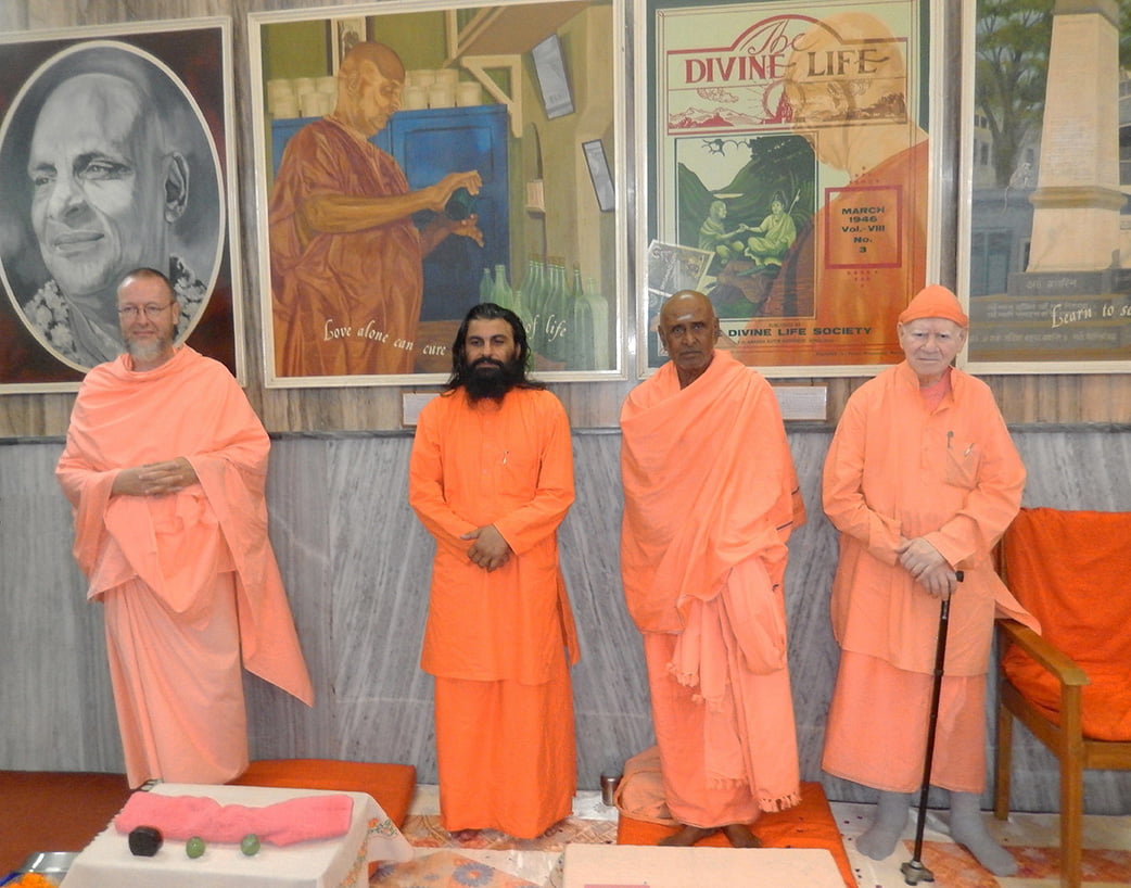 Sri Mahant Ji was then officially received at the Shivananda Ashram, headquarters of the Divine Life Society (Rishikesh), by Vice-President Sri Swami Yogaswarupananda Ji and Secretary Sri Gopi Ji who took him for a visit of Gurudev Kutir at the Shivananda Ghat, the Samadhi Shrine and the Sri Vishwanath Mandir. He then met with H.H. Sri Swami Padmanabhananda Ji, General Secretary, who invited him to give a special satsang at the Samadhi Shrine as part of the evening programme at the Ashram where he was warmly welcomed and felicitated by H.H. Sri Swami Vimalananda Ji, President of the Divine Life Society.