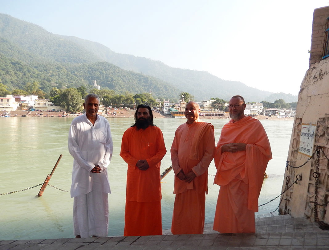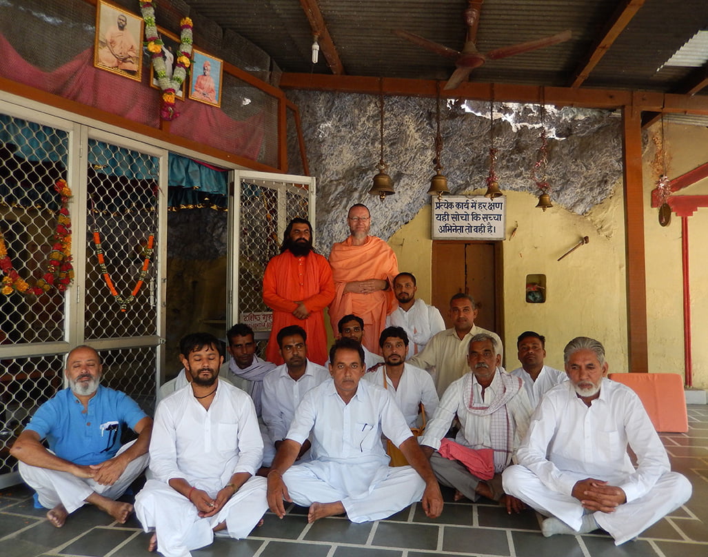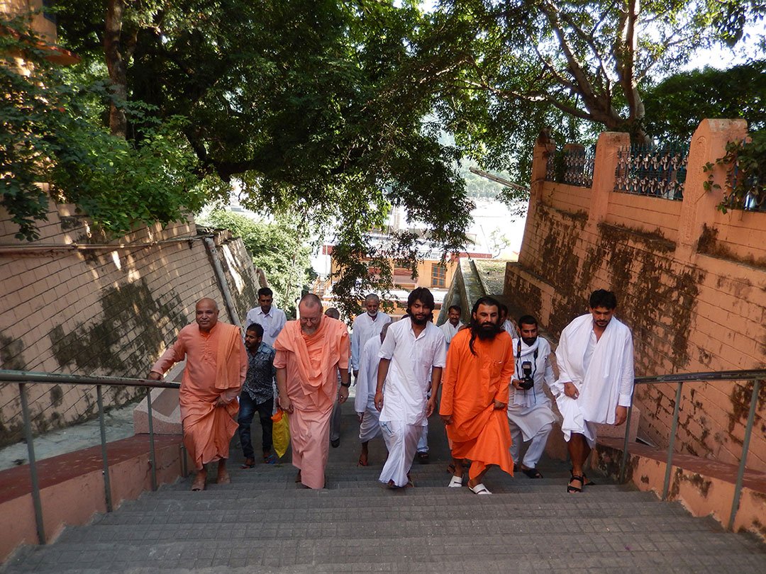 On the last day of his visit, Sri Mahant Ji went on a pilgrimage to several holy places in the nearby Himalayan foothills: Sri Vashishta Gupha, a holy cave of the Vedic times and the abode of Brahmalin Sri Swami Purushottamananda Puri (from 1929 to 1961); Chidananda Kashi (Kutya) at Kaudiyala, the hermitage of H.H. Sri Swami Ajatananda Saraswati (from 1975 to 1977); Sri Swami Ram Tirtha Meditation Gupha where the great Vedantic sage attained Self-Realization.